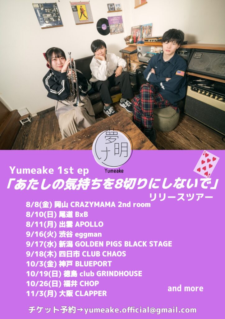 Yumeake 『あたしの気持ちを8切りにしないで』リリースツアー
